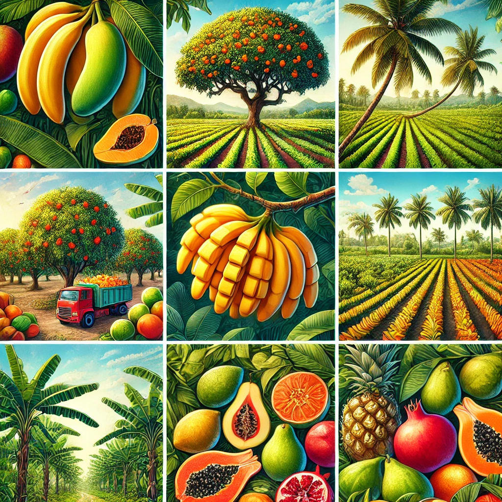 complete list of all fruits grown in India, along with their botanical names, growing seasons, and harvesting periods.